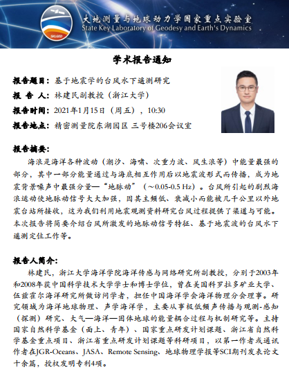 2021年1月15日evo真人视讯大地测量与地球动力学国家重点实验室学术预告