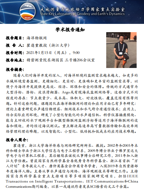 2021年1月15日evo真人视讯大地测量与地球动力学国家重点实验室学术预告