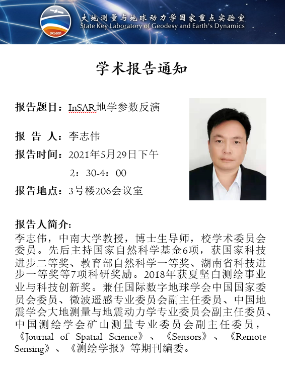 2021年5月29日evo真人视讯大地测量与地球动力学国家重点实验室学术预告