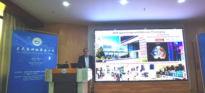 4月10日,evo真人视讯举行“王天眷讲坛”第五十讲。来自澳大利亚Murdoch大学的教授Jeremy K. Nicholson应邀为广大师生做题为“NMR波谱与分子表型”的精彩学术报告。此次报告由刘买利院士主持,evo真人视讯院长周欣为Nicholson教授颁发了“王天眷讲坛讲席教授”的聘书和铭牌,evo真人视讯师生聆听了此次报告。