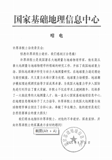 国家基础地理信息中心唁电