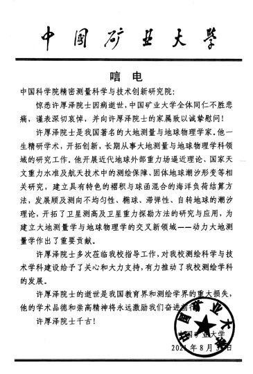 中国矿业大学唁电